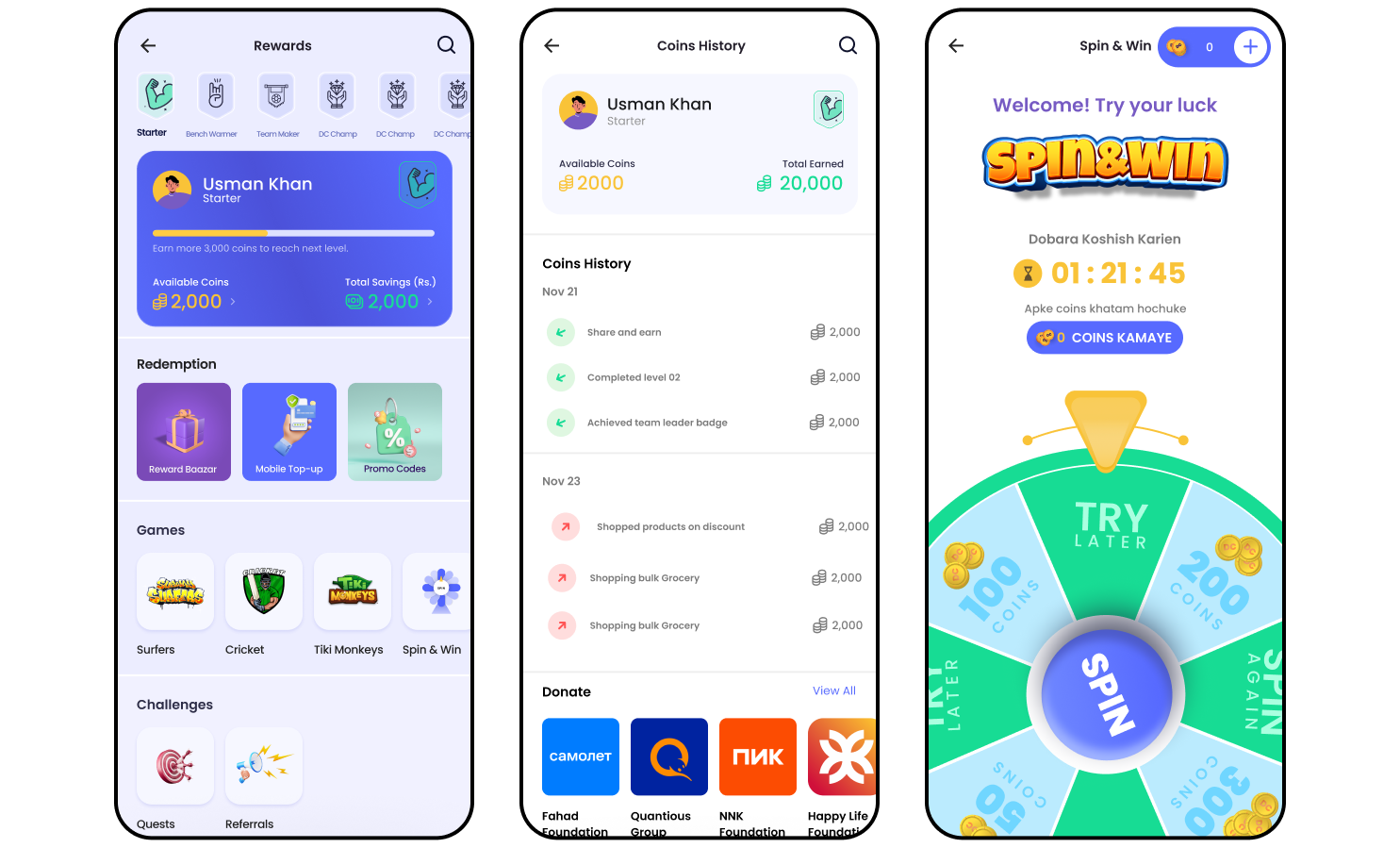 - The experience was fragmented. Coins, games, referrals, and bonuses were spread across the app without a clear, unified system.